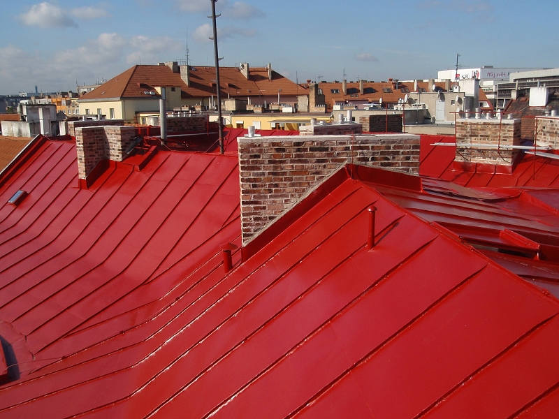 Nátěry střech provádíme beztlakovou stříkací pistolí nebo malířskými válečky. Pro samotné nátěry střech používáme v současnosti nejlepší syntetické barvy,dostupné na našem trhu. Pro základní nátěry střech používáme epoxidovou barvu a jako vrchní nátěry střech barvu polyuretanovou,která má dlouholetou životnost. Základní nátěry střech provádíme dvousložkovou silnovrstvou epoxidovou nátěrovou hmotou Interseal 670,která je dostupná i v hliníkové verzi,zajišťující ještě vyšší ochranu proti korozi. Pro vrchní a finální nátěry střech používáme dvousložkovou akryl-polyuretanovou nátěrovou hmotu Interthane 990. Takto technologicky a materiálově složené a navržené postupy pro nátěry střech garantují dlouholetou životnost vašich střech. Barvy mícháme dle výběru zákazníka a daných odstínů vzorníku barev. Práce provádíme převážně horolezeckou technikou. Na práce a použité materiály dáváme záruku 10 let.