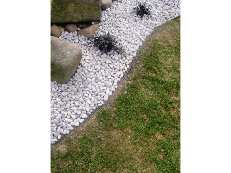 Jednoduché řešení pro oddělení záhonů od trávníku. Obrubník se jednoduše umístí zároveň s terénem, takže lze sekat trávník až do kraje.