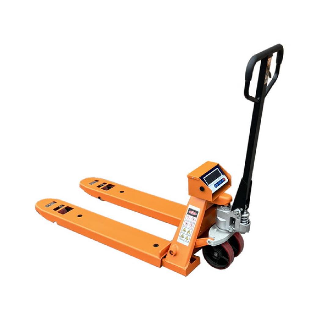 Paletový vozík s váhou PV4TYCS do 1500kg v lakovaném provedení.