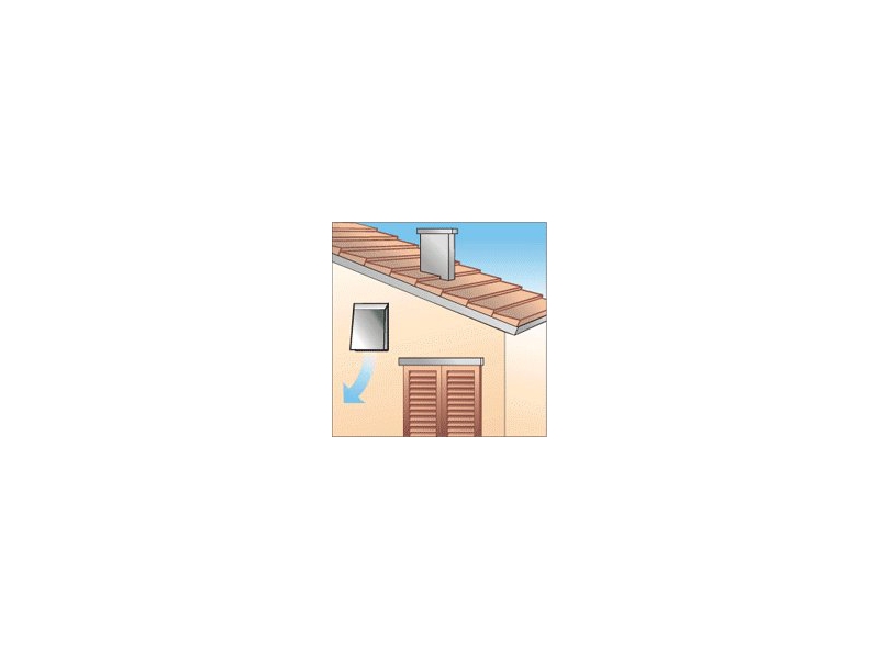Dvou rychlostní odsávací ventilátor na fasádu s kuličkovými ložisky a zpětnou klapkou, možnost potrubního odsávání všech interiérů.