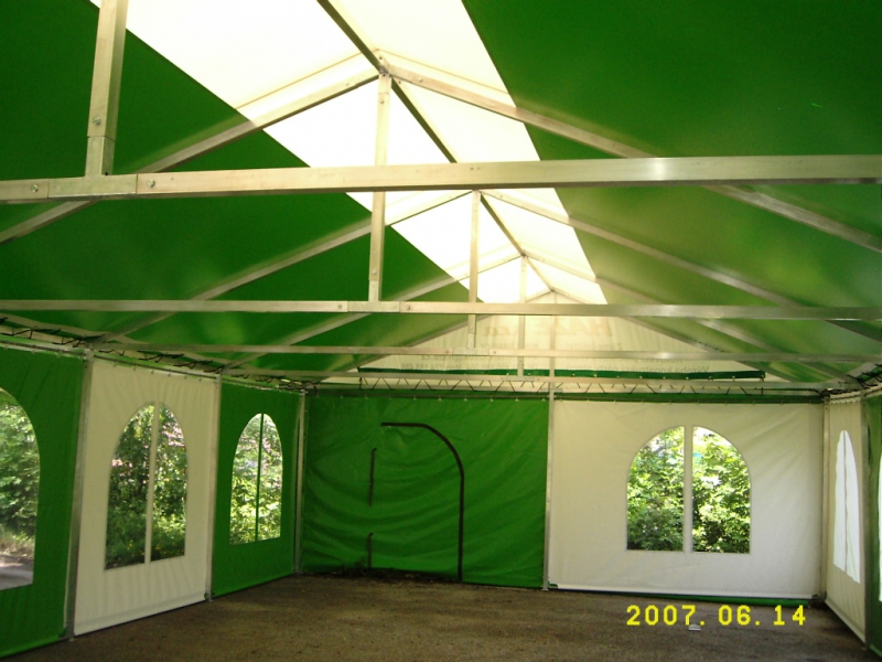 Skladové stany různých rozměrů a barevných kombinací z PVC belgické výroby. Možnost oken různých rozměrů z kouřové i čiré fólie, možnost libovolného digitálního potisku.