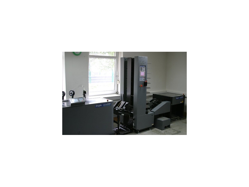 DUPLO BOOKLETMAKER 5000 s 10 stanicemi propojenou ve výstupu se zařízením SQUAREFOLD na zarovnávání hřbetů u vazeb V1.