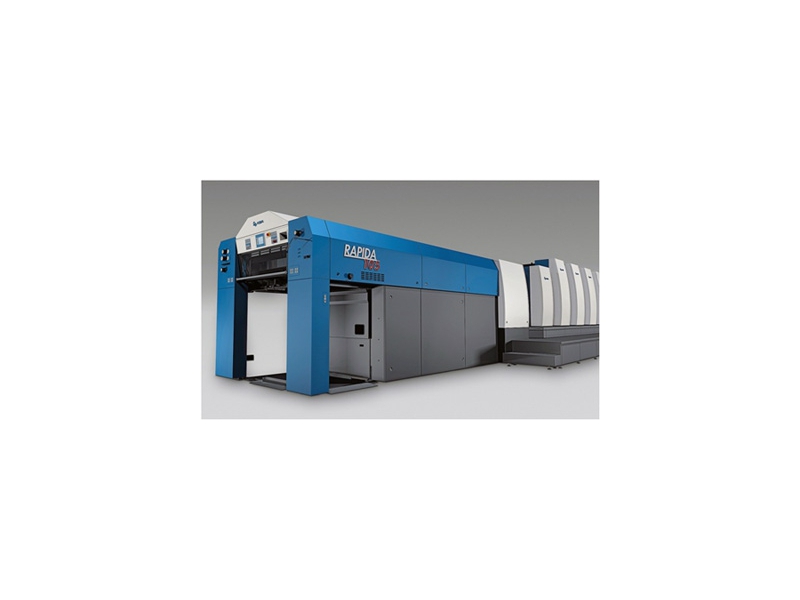 KBA RAPIDA 105-4+L, tiskový formát B1. Rapida 105 nabízí maximální výkon 15 000 archů za hodinu. Naše verze stroje umožňuje potisk materiálů o tloušťce pro lehké substráty počítá s tloušťkou od 0,04 mm, až po potisk těžších obalových materiálů jež umožňuje zpracování kartonu a lepenky do tloušťky 1,2 mm. Součástí výbavy stroje je disperzní lakovací jednotka.