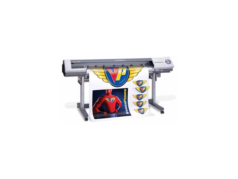 Kombinovaný plotr Roland VersaCamm VP-540 s nejnovější verzí výkoného RIPu Roland VersaWorks. Na stroji je možno provádět nejen tisk, ale i tvarové řezání dle představ zákazníka. Výroba bannerů, nálepek, nápisů, grafiky na vozidlech i prodejních displejů se tak skutečně stává hračkou.