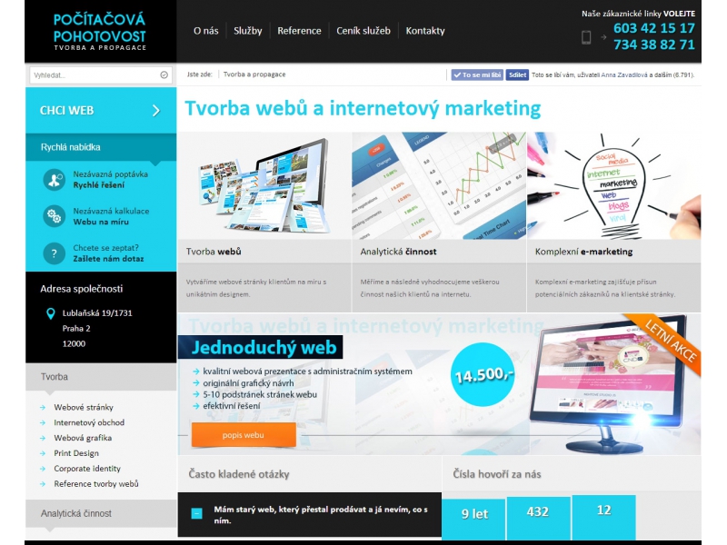 POČÍTAČOVÁ POHOTOVOST s.r.o. byla založena v roce 1996, aby vyplnila vakuum na poli komplexní a profesionální údržby počítačových systémů a technologií. V současnosti společnost poskytuje nejen okamžitý 24 hodinový servis veškeré výpočetní techniky, ale i tvorbu webových stránek a jejich propagaci. Oddělení tvorby a propagace webových prezentací funguje od roku 2005, stále se rozrůstá, inovuje své postupy a intenzivně se technologicky zdokonaluje.