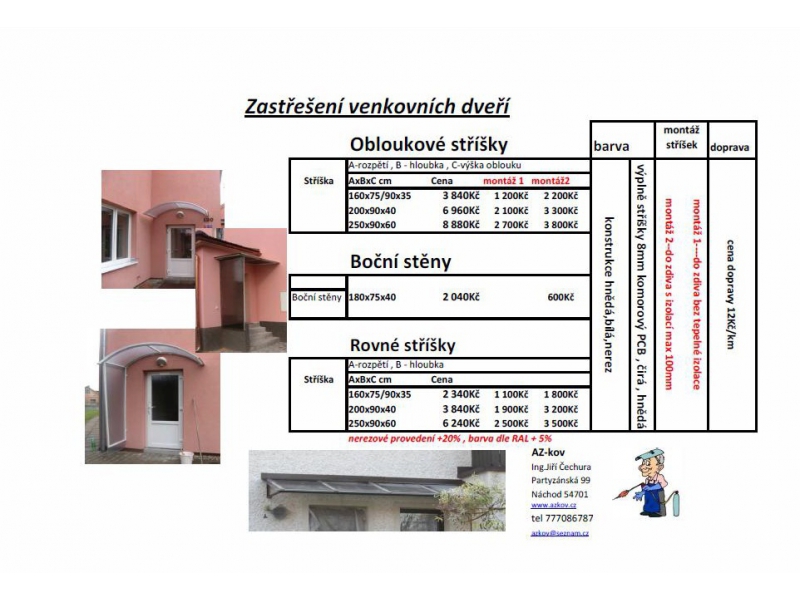 Výroba:stříšky nad vchod, přístřešky, zastřešení schodů, vjezdů, pergol, kovové konstrukce , zastřešení bazénů. Montujeme polykarbonátové a sklolaminátové desky.