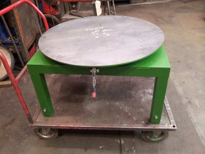 Rozměry stolu 600x800 mm.Nastavitelná výška.Otočná deska průměr 800 mm na axiálních ložiscích s ruční aretací.