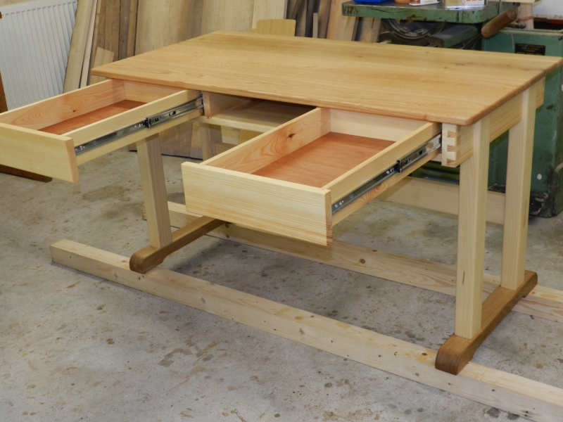 Dětský/studenský stůl je vyroben ze smrkového korpusu a odolnou dubovou pracovní deskou. Rozměr desky je 140x70cm.
