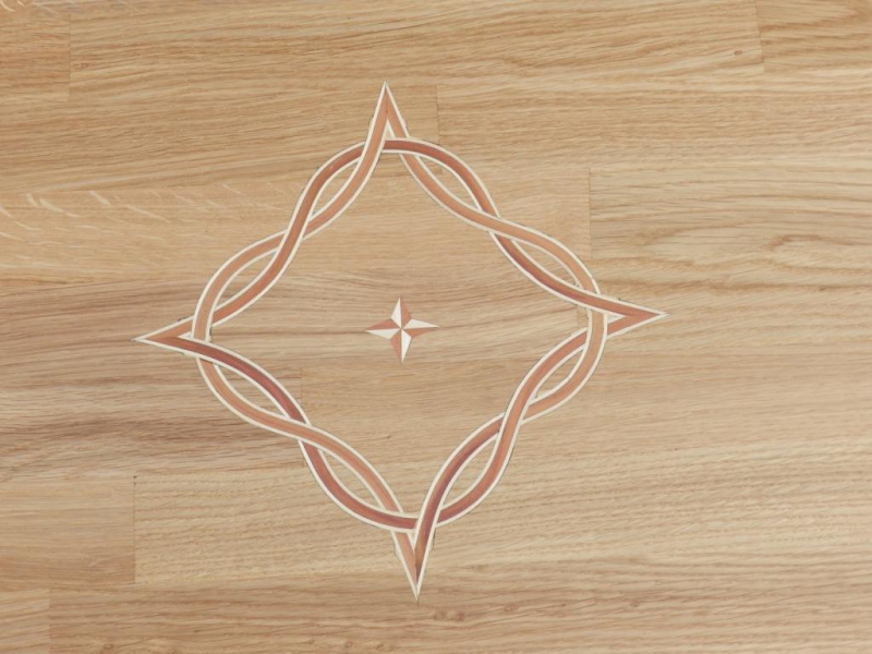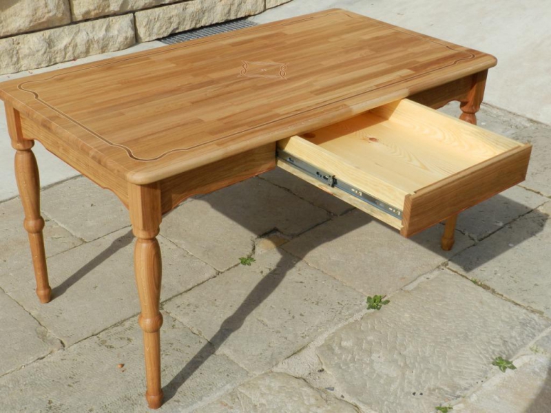 Dubový stůl zdobený inkrustací a švestkovými lemy