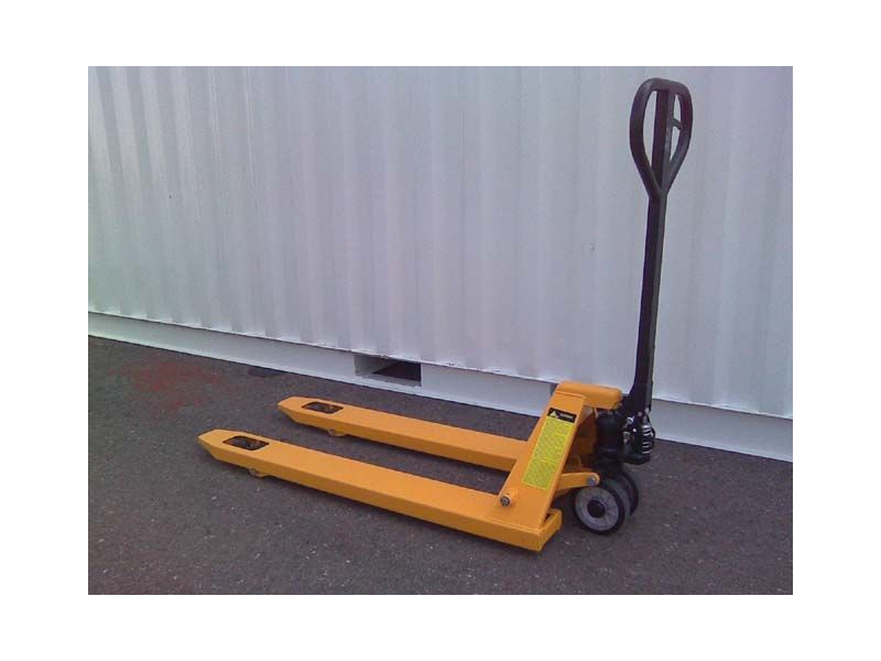 Ruční paletový vozík s kvalitní hydraulikou, pevný rám pro vysoké zatížení,nájezdové kladky a gumová kola.
