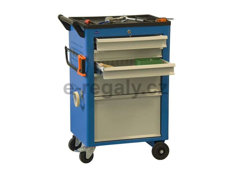 Montážní vozíky jsou vyrobeny z masívní svařované ocelové konstrukce opatřené pojezdovými koly s brzdou. Jsou ideálním vybavením dílen a servisních středisek. Poskytují přehledné uspořádání nářadí a nástrojů v zásuvkách nebo na poličkách.