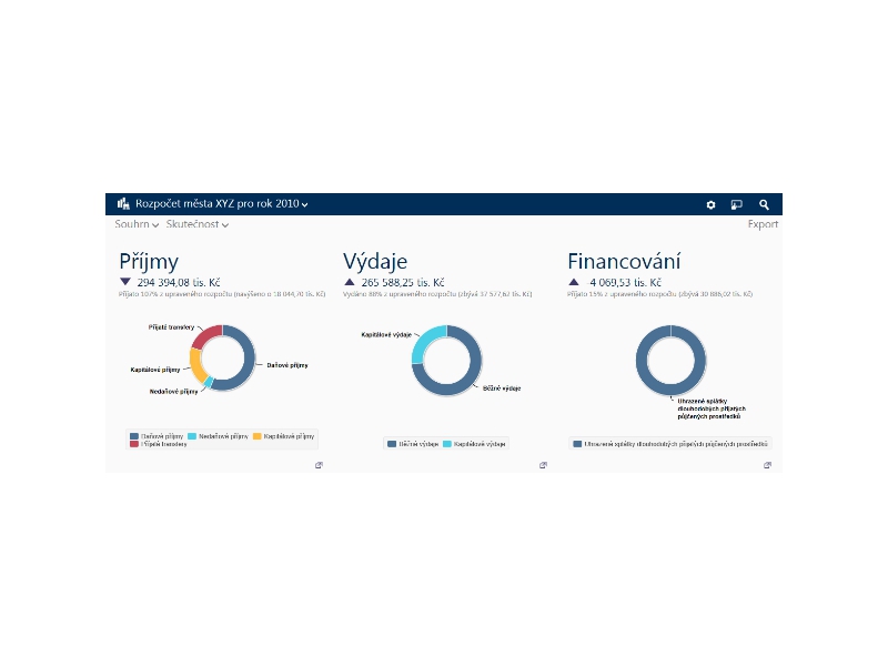Moderní a otevřený úřad musí umět prezentovat data o stavu rozpočtu a jeho čerpání v jednoduché formě srozumitelné i laické veřejnosti. Interaktivní grafická prezentace aktuálního stavu rozpočtu na webových stránkách organizace.