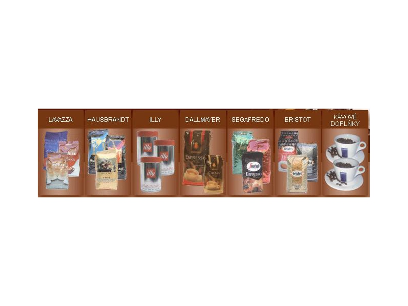 - prodej italské kávy Lavazza, Segafredo, Illy, Bristot, Lamborghini a Hausbrandt Káva je dodávána jak pro jednotlivce tak i hotely, restaurace, pizzerie, kavárny, cukrárny, velkosklady potravin.