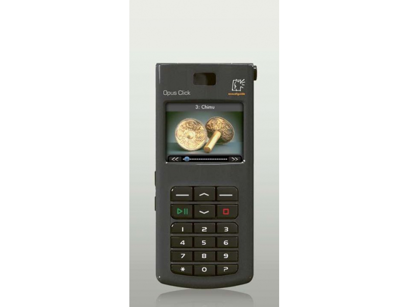 OPUS Click je sluchátko s klasickou numerickou klávesnicí a obrazovkou, ve kterém jsou uloženy zvukové vícejazyčné nahrávky, hudební podmalba, fota, videa, včetně speciálních nahrávek (např. prohlídky ve znakovém jazyku, nahrávky pro děti aj.)
