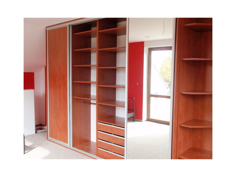 Vestavěné skříně řeší jakýkoli atypický prostor. Lze si vybírat ze široké nabídky materiálů, barev a výplní dveří. Vnitřek skříní lze řešit pomocí polic, zásuvek, doplňků, jako například sklopné tyče, držáky, věšáky či drátěné koše.
