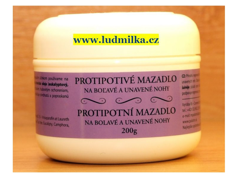Přírodní regenerační krém s protiplísňovým a uklidňujícím účinkem používáme na ošetření bolavých nohou. Obsahuje přírodní éterické oleje (eukalyptový, mátový, čajovníkový) a extrakt se šalvěje. Působí proti zánětům, houbovitým onem, pocení a zápachu.
