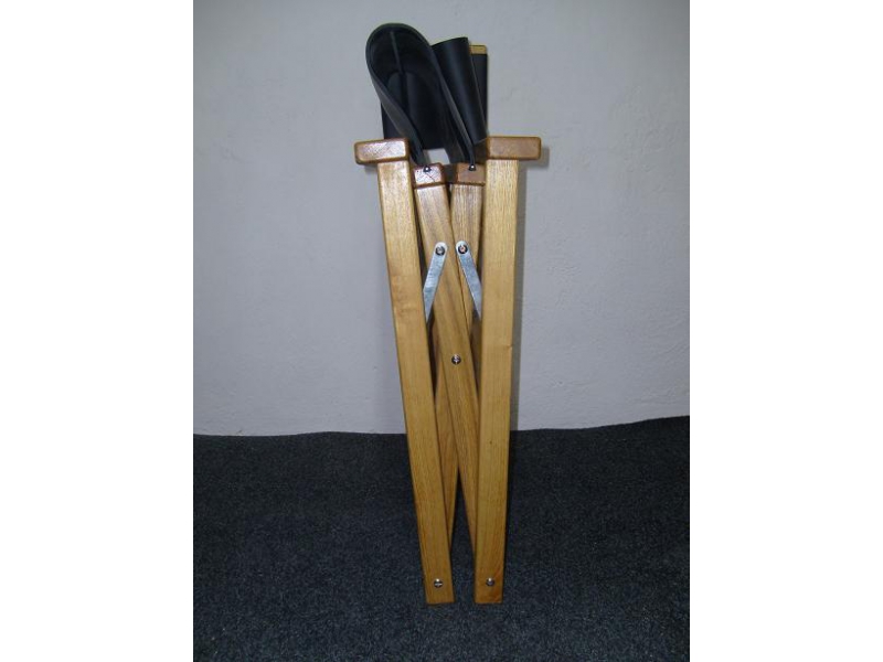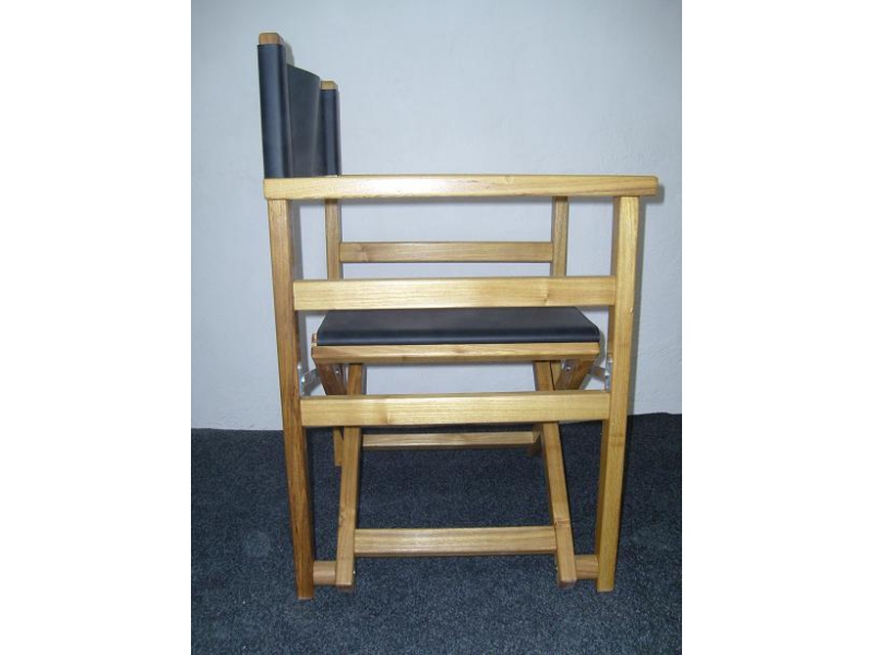 Skládací křeslo z akátového dřeva. Přírodní lak. Pravá kůže, ekologicky činěná, ručně šitá.