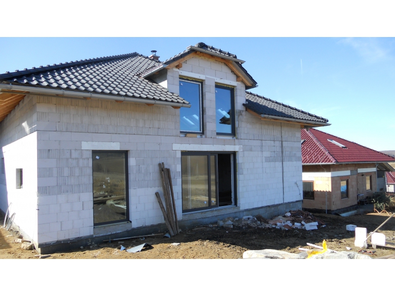 RD stavba,YTONG-tenkovrstvé lepidlo,obvodová stěna šířky 50 cm,stropy SPIROL,obvodové zdivo + vazba cca 2měsíce,počet lidí na vyzdívání - 2, vazba 4 lidi...