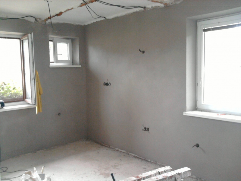 Zvětšení prostoru - kuchyně, jídelna, chodba, koupelna, renovace stěn, plovoucí podlahy a snížení stropu, elektro