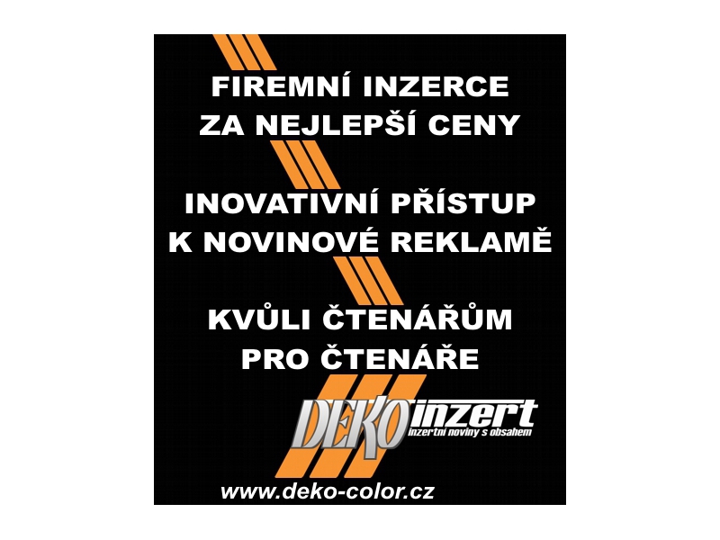 Inzerce na titulní straně našich novin v polovině každého měsíce vidí kolem 20 000 domácností ZDARMA. DEKO INZERT získal za rok svého působení oblibu zejména díky křížovkám, soukromé řádkové inzerci zcela zdarma pro všechny čtenáře v okr. TU, SM, JC.