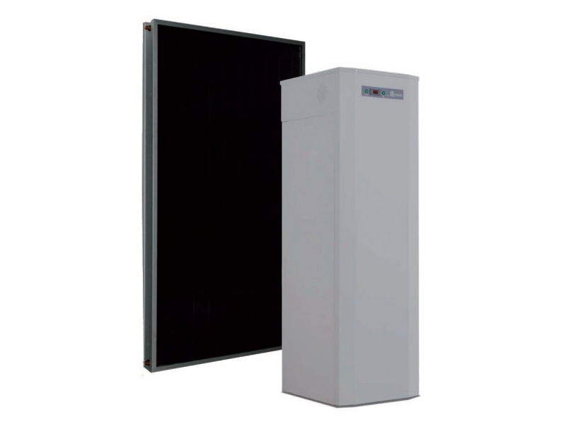 Termodynamická jednotka k ohřevu vody o velikosti 200, 300 a 500 litrů se instaluje s deskovými solárními kolektory (nejsou v dodávce). Umožňuje získávání energie ze slunce i okolí. Snížení roční spotřeby o víc jak 80%. Možná varianta E, E+I