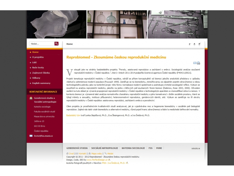 nové webové stránky pro projektový web "Reprobiomed - Zkoumáme českou reprodukční medicínu" Fakulty sociálních studií Masarykovy univerzity