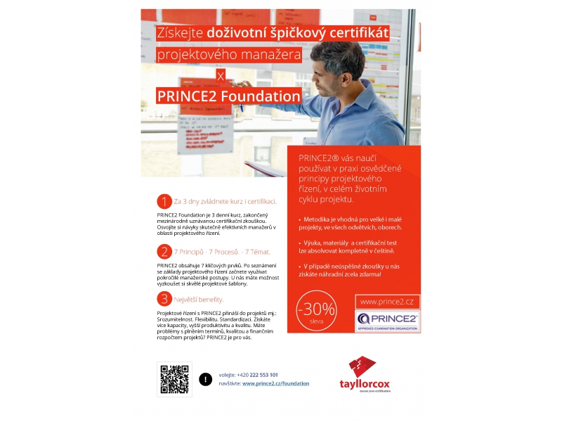 Metodika PRINCE2® vás naučí používat v praxi osvědčené principy projektového řízení, v celém životním cyklu projektu. Je vhodná pro malé i velké projekty. Výuka, materiály i certifikace v češtině.