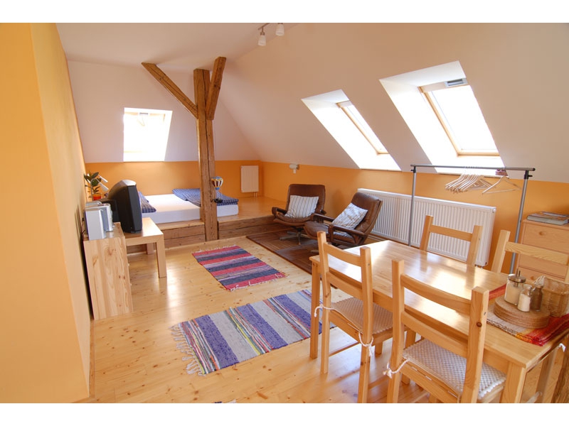 Klidný rodinný penzion na polosamotě. Podkrovní místnosti, parkoviště přímo u objektu, k dispozici také venkovní gril s posezením.