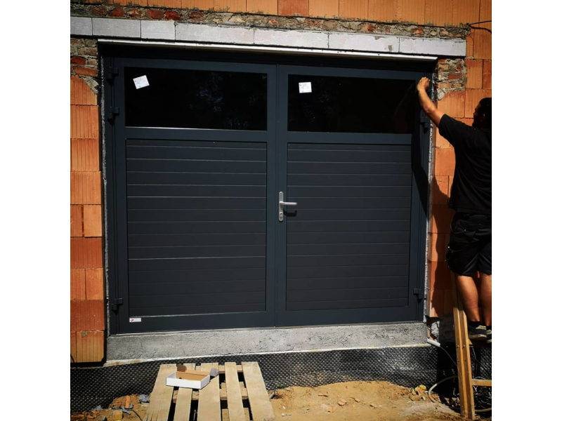 Dodávka a montáž dvoukřídlých zateplených vrat s hliníkovými profily.