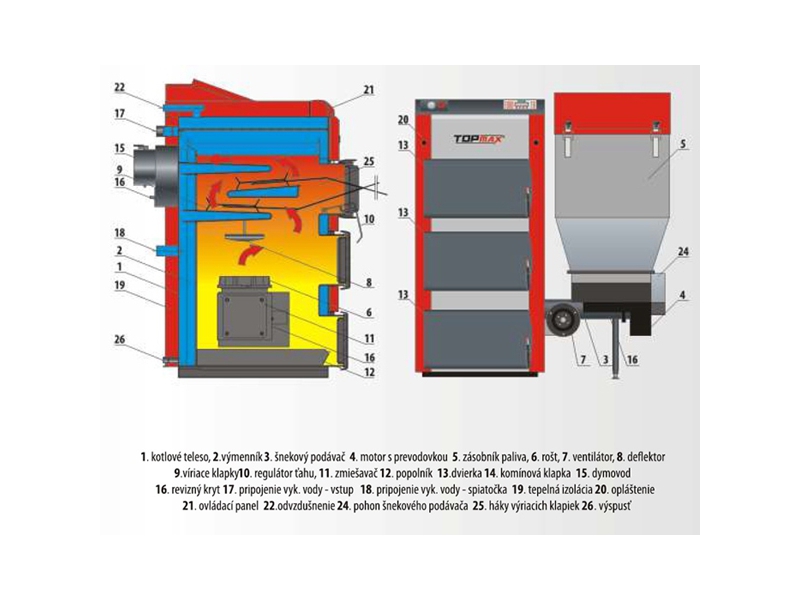Ten umožňí efektivní spalování tradičních paliv jako jsou dřevěné pelety, uhlí a stejně tak i spalování méně kvalitních alternativních paliv jako je obilí a slaměné pelety