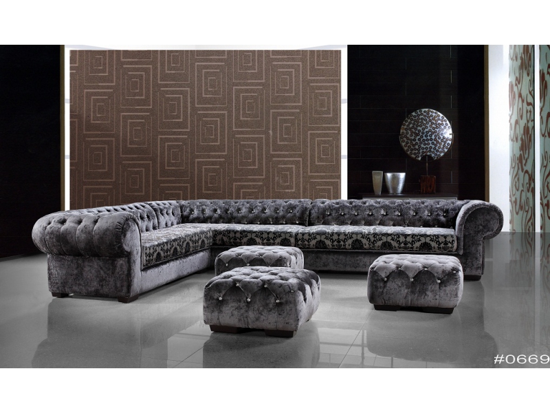 Rohová sedací souprava s taburetem. Možnost provedení v látce i v kůži