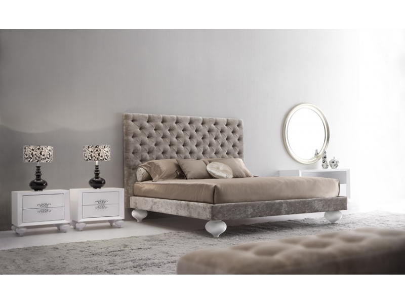 Postel, bílý lesk, čalounění látka. Rozměry pro matraci 1800 x 2000