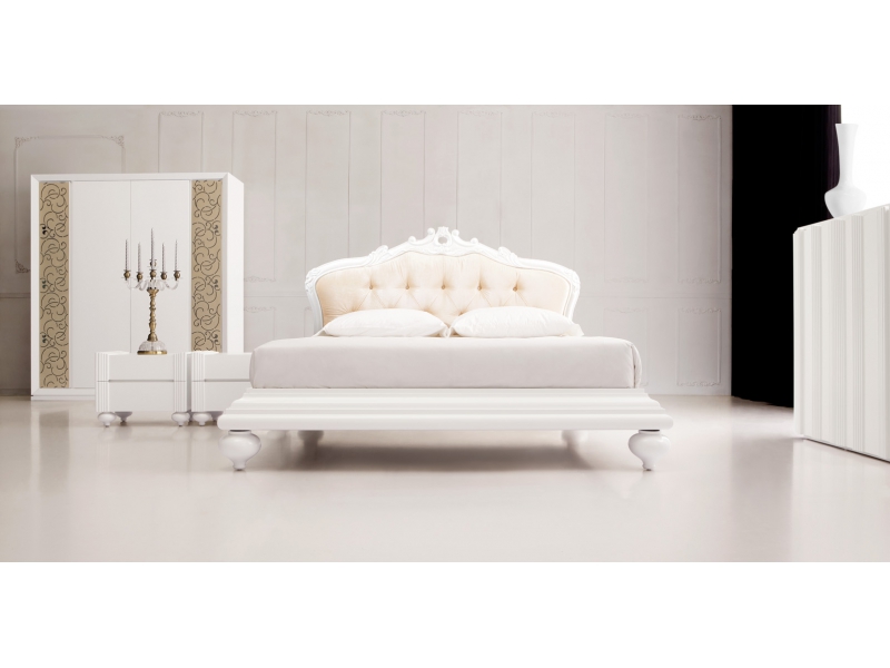 Postel, bílý lesklý lak, látka. Rozměry pro matraci 1800 x 2000