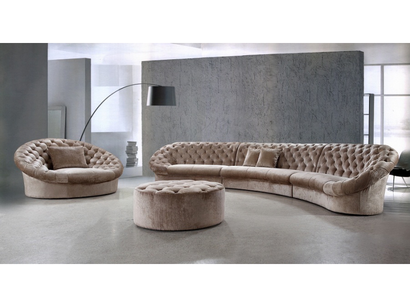 Rohová sedací souprava s křeslem a taburetem. Možnost provedení v látce i v kůži.