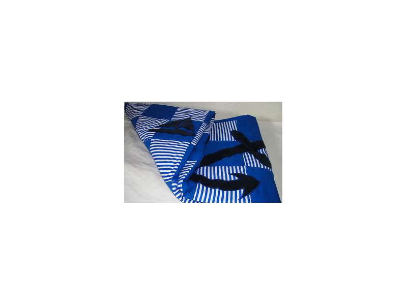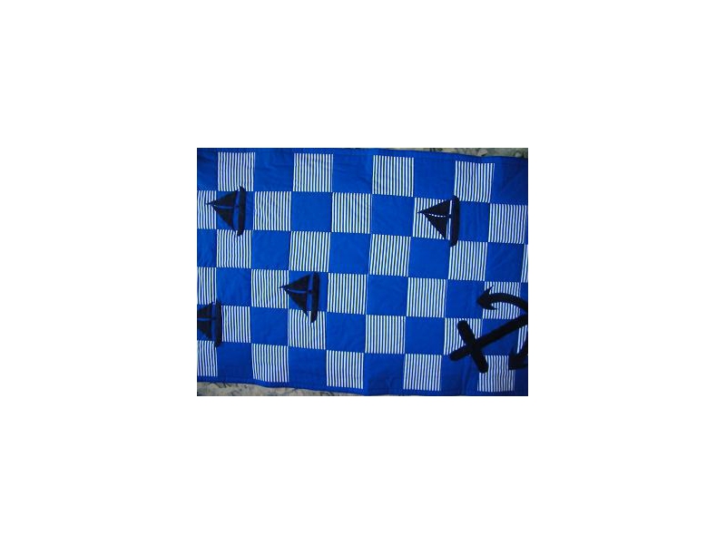 Deka ušitá technikou patchwork,může sloužit i jako přehoz přes postel nebo v létě jako peřinka.Je vyteplená vatelínkem.Prošitá v po každém čtverečku,lodičky a kotva jsou na dece našité v fleecu,tak na dotek působí plyšově a vzhledem plasticky.168x103