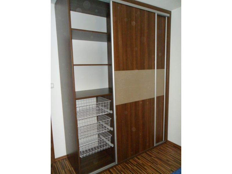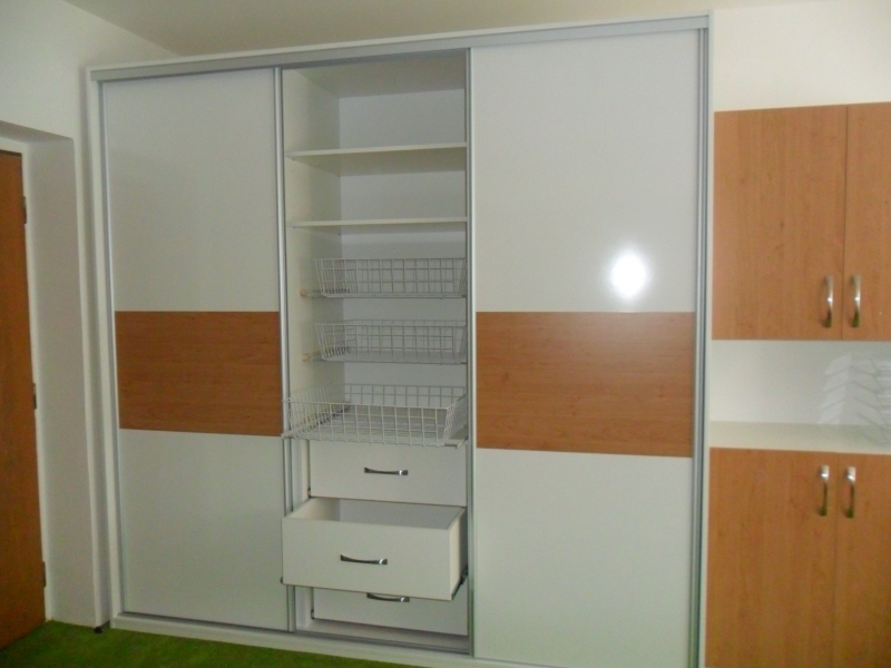 Kvalitní vestavěné skříně z lamina s posuvnými dveřmi z lamina, lacobelu, zrcadla. Vnitřní vybavení vestavěné skříně je na výběru zákazníka - šatní tyč, koše, zásuvky, drátěný program. Vestavěné skříně Plzeň a Plzeňský kraj