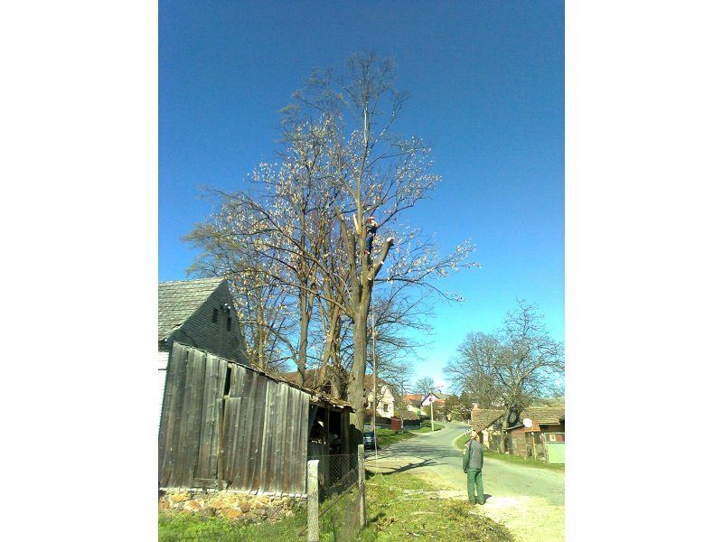 Rizikové kácení ve ztížených podmínkách jako je např. NN, VN, VVN, chaty, domy. Poskytujeme i úklid větví i samotného dřeva dle přání zákazníka. Větve je možno i seštěpkovat. Dále provádíme vyžínání křovinořezem, vyřezávání náletových dřevin, sázení stromku.