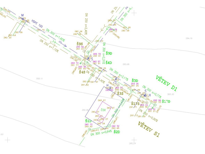 Zaměření včetně vyhotovení dokumentace skutečného provedení stavby (vodovod, kanalizace, plyn, elektrika, silnice, budovy, aj. objekty. Cena od 3.500,- Kč.