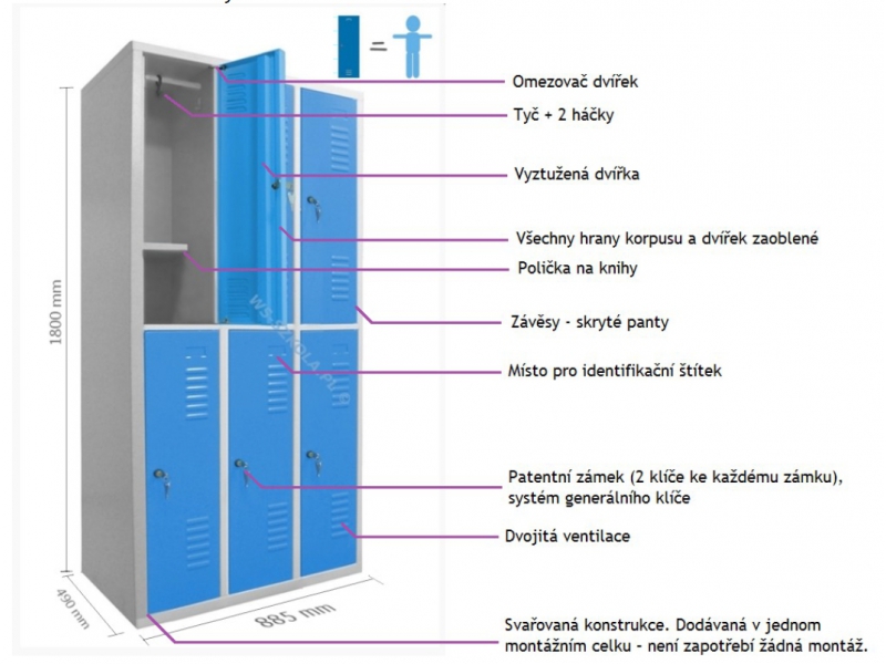 1. Nábytek pro sociálni prostory (šatní, úklidové skříně),