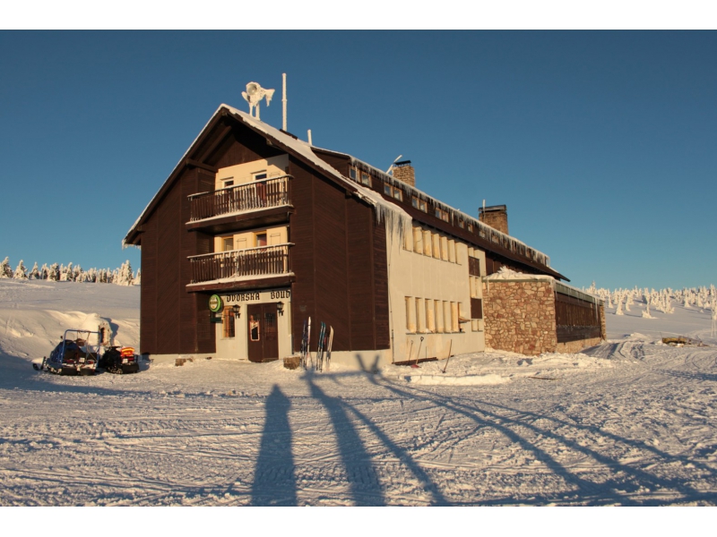 Dvorská Bouda se nachází v nádherné přírodě krkonošského národního parku v nadmořské výšce 1313 m, s překrásným výhledem na předhůří Krkonoš i Liščí horu (1363 m), která je od chaty vzdálena zhruba jeden kilometr.