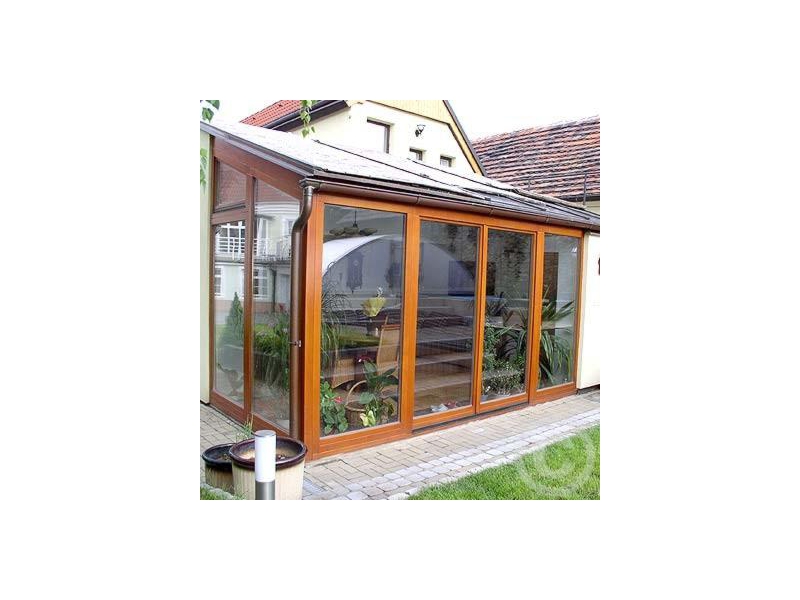 Zimní zahrady vychází z konstrukce EURO oken. Střešní konstrukce je zpravidla širších rozměrů ohoblovaných na rozměr 68 – 80 x 100 – 140 mm. Lemování střech a krytí krokví dodáváno v profilech Gutmann povrchově ošetřených eloxováním.