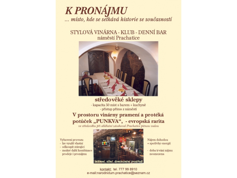 Stylová vinárna s barem k pronájmu, národní a obchodní dům.