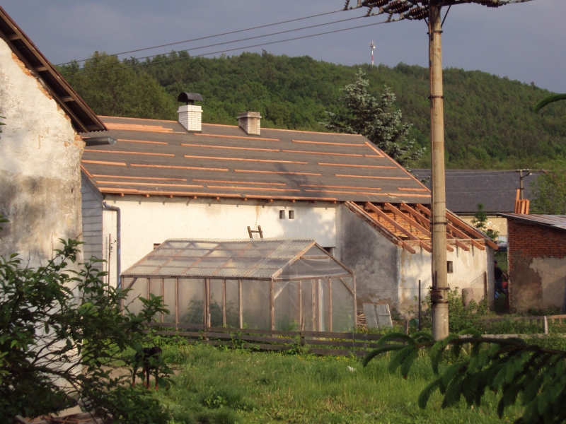 Odstranění původních krovů, zhotovení nové vazby, příprava pro krytinu.