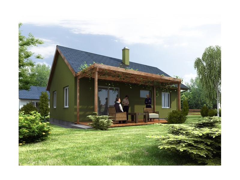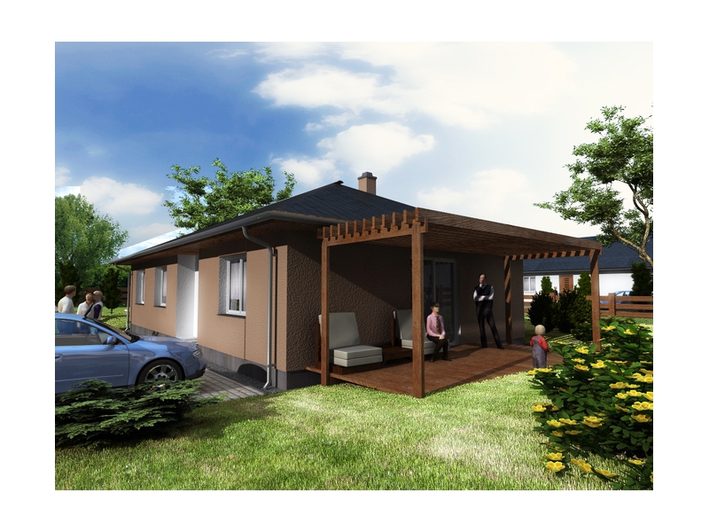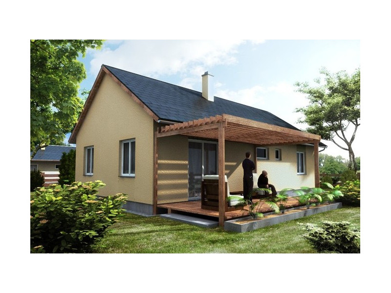 Přízemní rodinný dům ALNUS je navržen pro pohodlný život dvou lidí bez ohledu na věk. Nízké pořizovací náklady jsou dány jednoduchou konstrukcí a velikostí domu.
