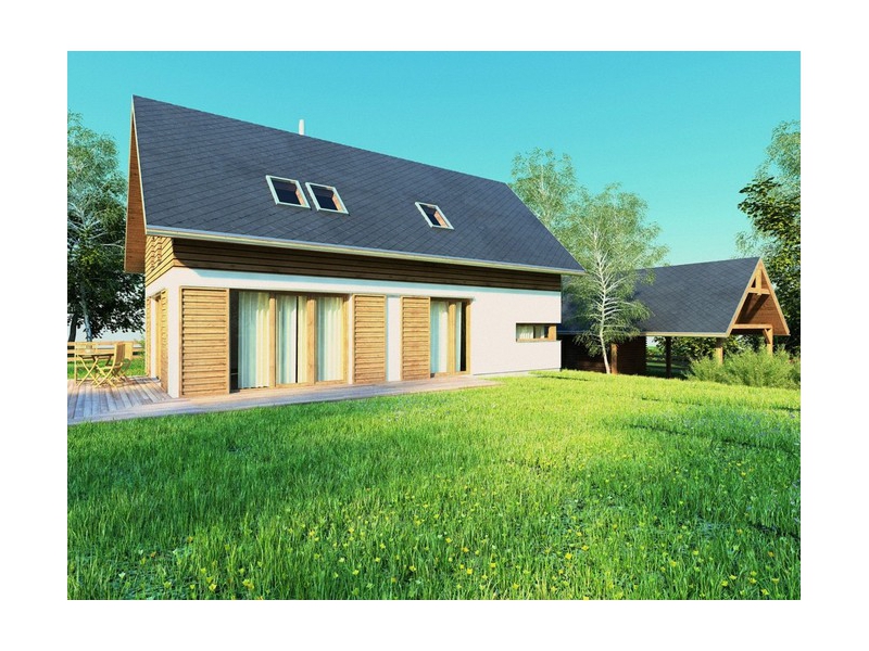 Nízkoenergetická dřevostavba větší velikostní kategorie, která je vhodná zejména do nízké okolní zástavby. Dispoziční a architektonické řešení domu je navrženo s ohledem na nízkou energetickou náročnost.