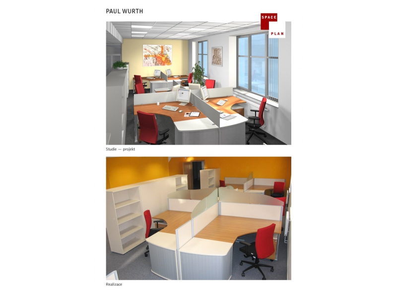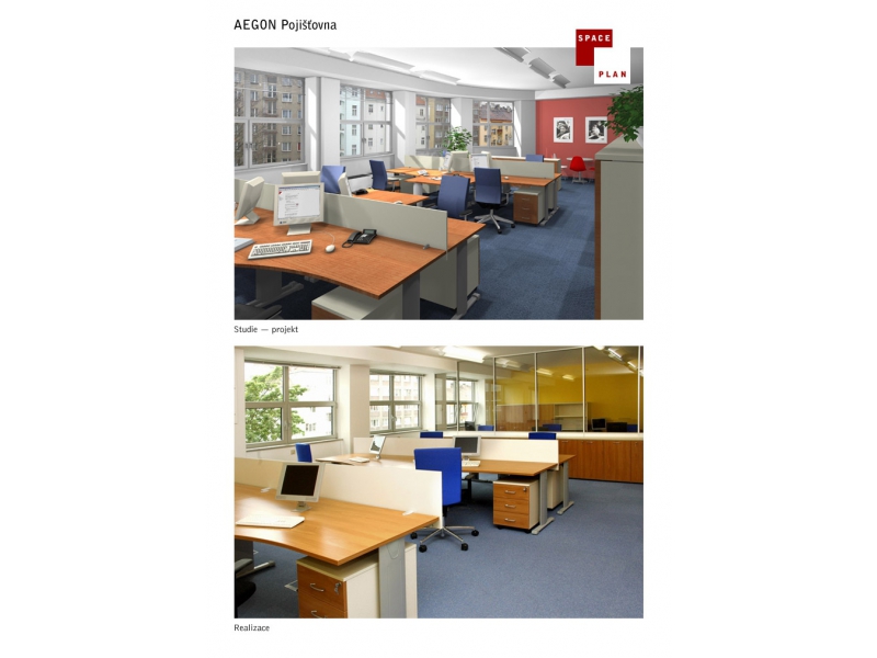 Logicky uspořádané a praktické dispoziční řešení interiéru ideálně respektující ergonomii. Maximální důraz na efektivitu a účelnost kancelářského prostředí.