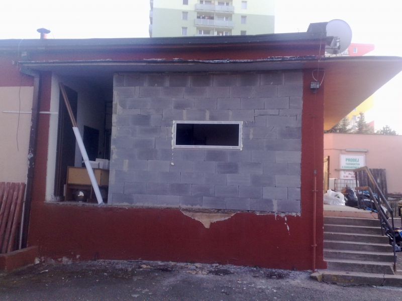 Demontáž kovové konstrukce,zdení osasení okna a zárubní