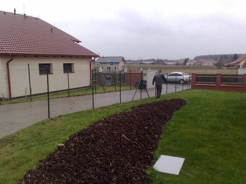 Dodělání plotu po neseriozním živnostníkovy.Doložení stříšek na KB bloky,výplň plotu,překládka zámkové dlažby,Osazení sloupků a natažení pletiva