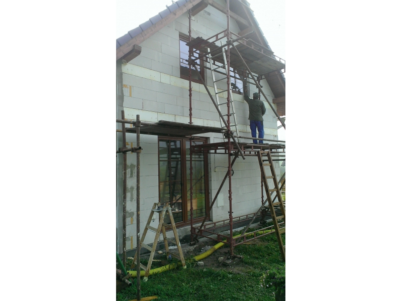 Výstavba rodiného domu od základu včetně pokládky střechy a finální omítka na fasádě.