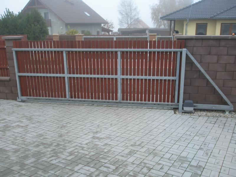 Samonosná vjezdová bráne na nosném "C" profilu, s pohonem.